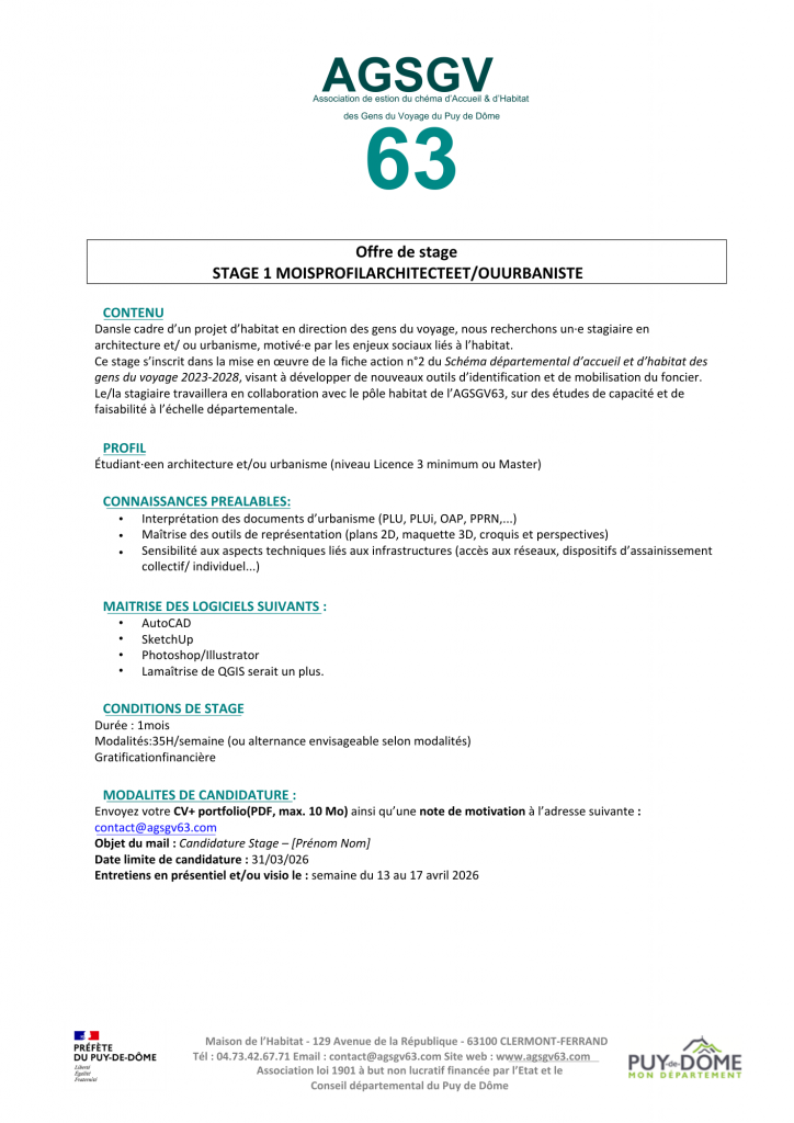 Les communes et leurs groupements ont su parfaitement utiliser les services apportés par l’équipe des professionnels qui composent l’AGSGV pour mettre en œuvre les schémas successifs. Grâce à la volonté des uns et des autres, et même s’il reste encore tant à faire, on peut dire qu’aujourd’hui le Puy-de-Dôme est passé du stade de département pilote à département exemplaire.Ce site internet est une des formes d’expression de la « maturité » de l’association. Voulu dynamique et didactique, accessible au plus grand nombre, il offre un outil supplémentaire d’information, de renseignement, de documentation. Il permettra en outre de mieux nous connaitre, de mieux appréhender en quoi consiste ce schéma d’accueil et d’habitat, véritable outil d’une politique départementale au service de l’intérêt général au cœur duquel nos concitoyens que sont les des Gens du Voyage doivent trouver toute leur place.